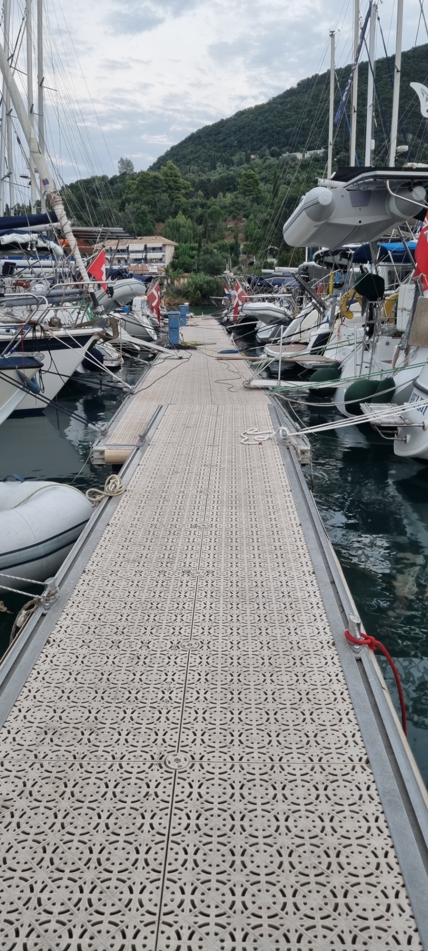 Torsdag d. 14 sejlede vi til Nidri. Vi havde booket plads ved Iris Pontoon. Vi havde fået det anbefalet af en anden dansker. Mens ligger her er der fri adgang til pool, vaskeri og badefaciliteter samt vand og strøm med i prisen.