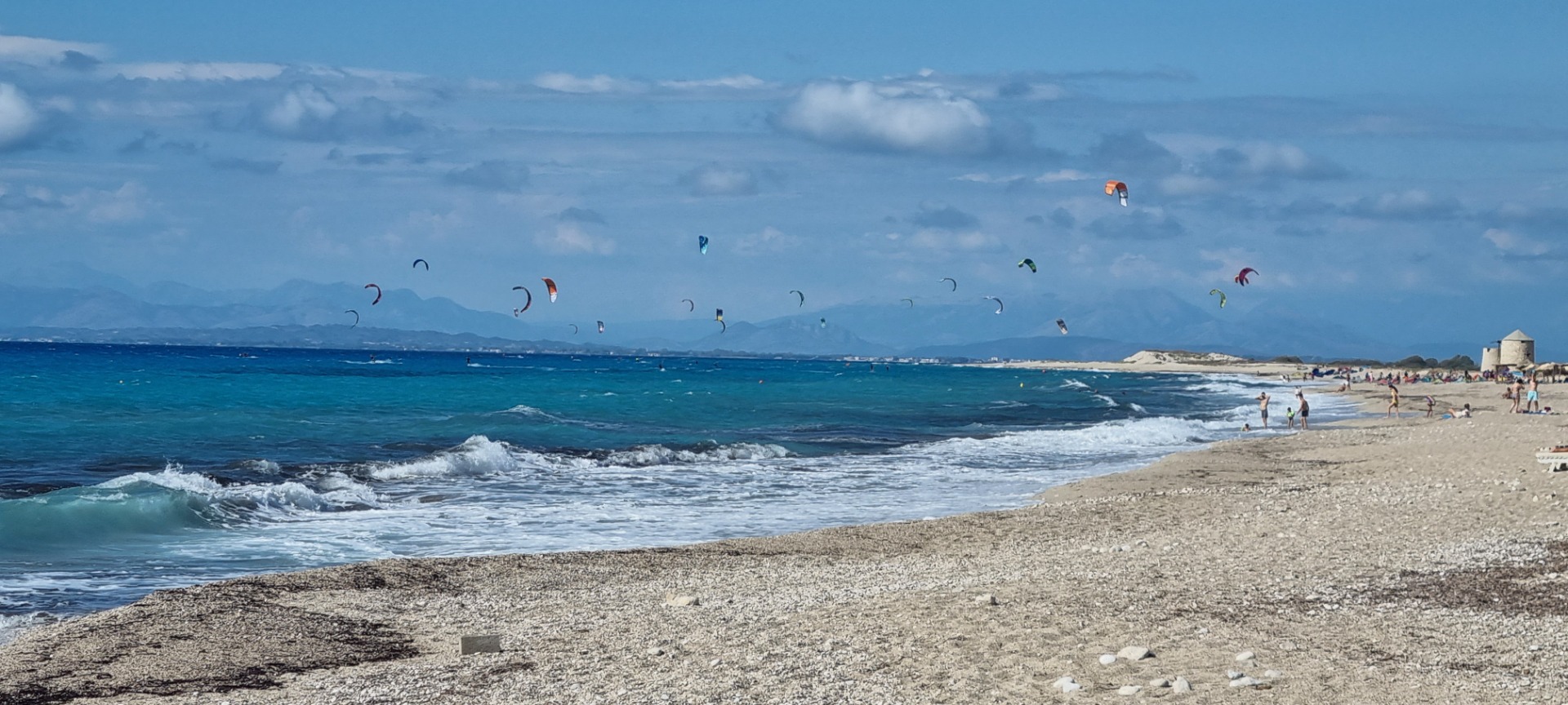 Planen var afgang kort efter hans ankomst men det ændrede sig da det blæste op. Vi besluttede at blive og gik en tur ud til stranden. Vinden var varm trods strid modvind. Der var mange surfere på vandet og badning på eget ansvar da bølgerne var høje.