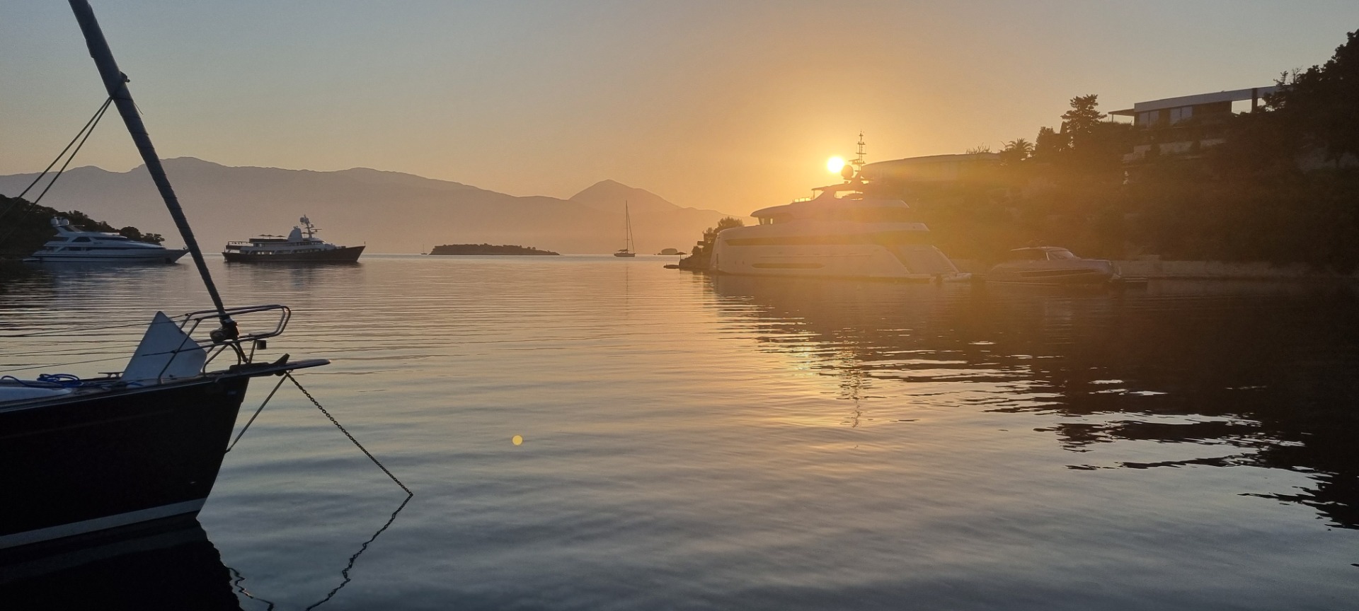 D. 7.9 sejlede vi til Itachki for anker med planen om at se blodmåne. Vi fik set lyn nedslag og skyer til en start. Vi havde ellers fundet det perfekte spot. Heldigvis viste månen sig for os. Der var stor begejstring og vi nød dette fænomen.
