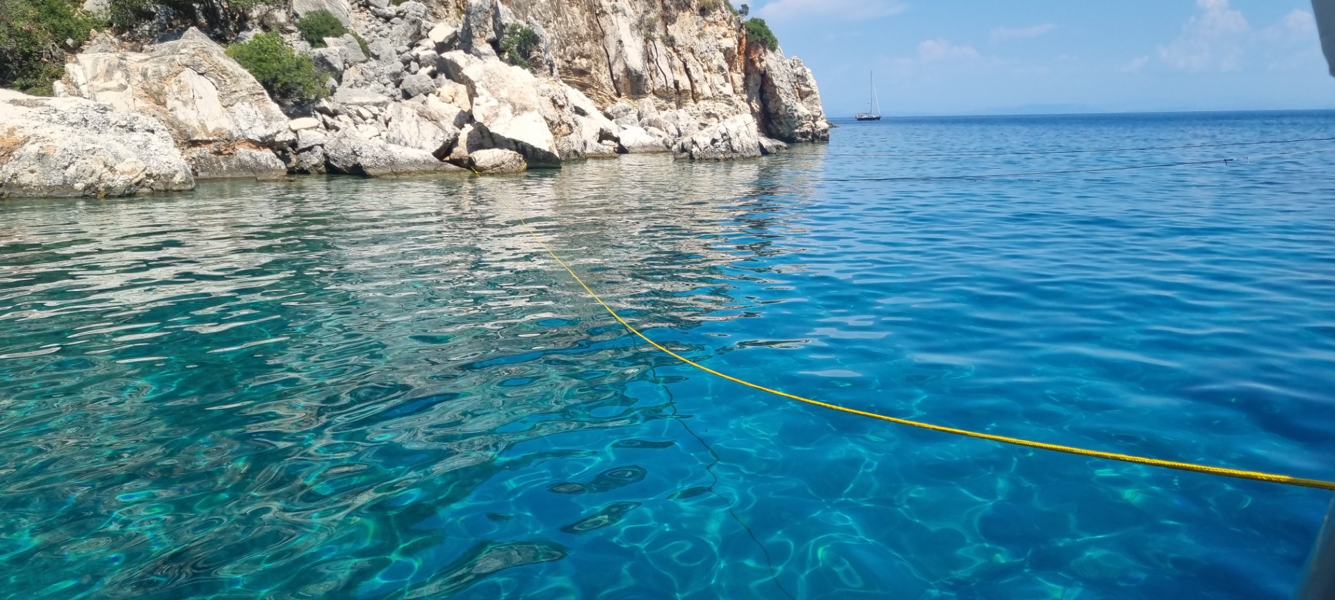 Vi sejlede til Meganissi, som er blevet et yndet sted for os. Øen er fuld af skønne bugter og kroge hvor vi kan finde læ for vind og bølger. Øen er utrolig smuk og rigtig ø stemning. Et par dage på et velkendt sted med mulighed for badning, paddelboard og bare slappe af.